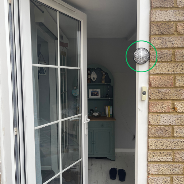 Mount BuzzyGo on the UPVC frame around the door using sticky dots provided so it always faces outward toward the fly entry path.