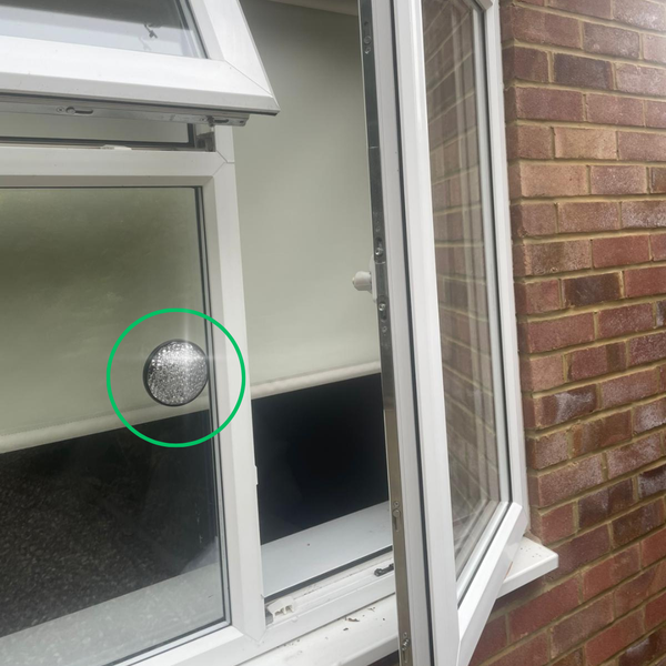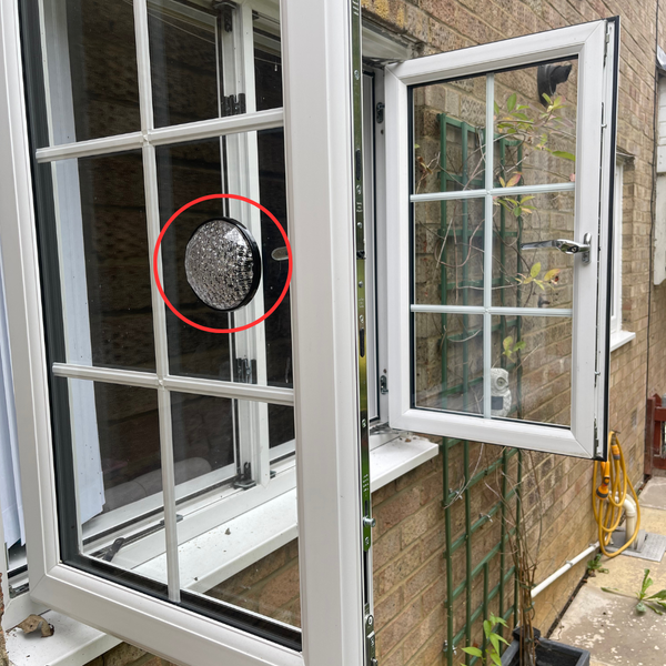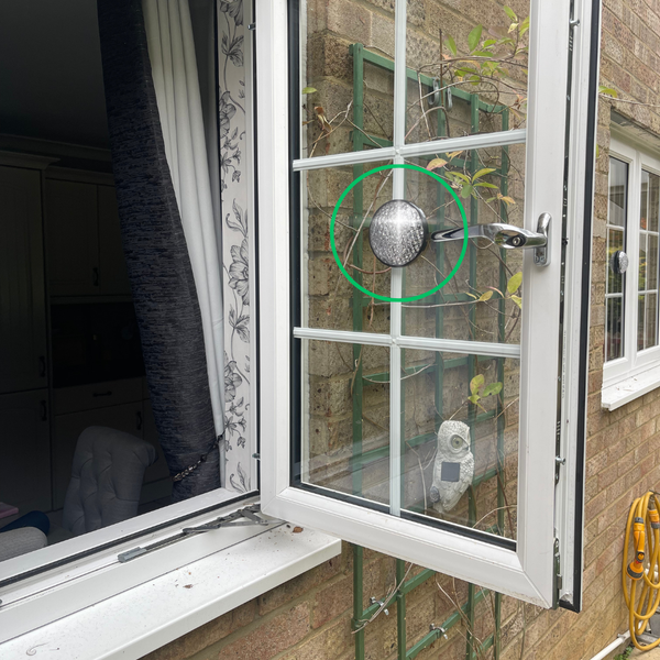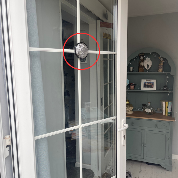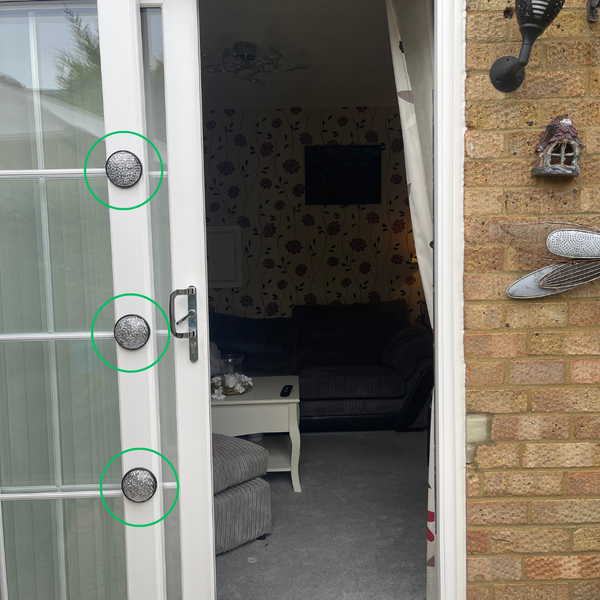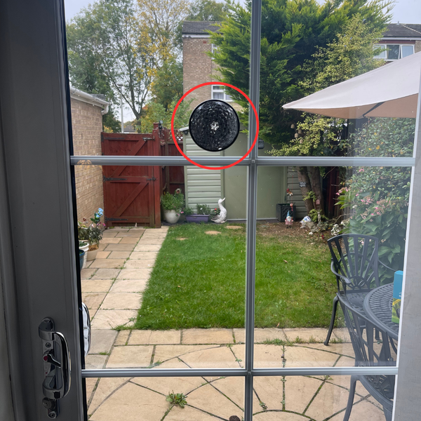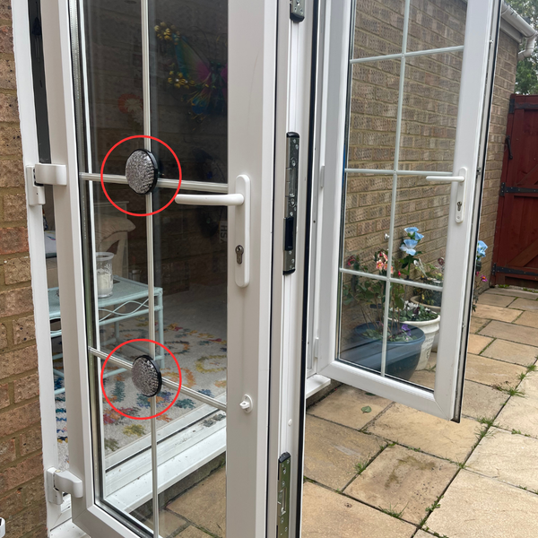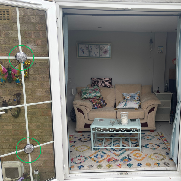Place BuzzyGo outside on the UPVC frame. It always faces outward toward the fly entry path and won’t interfere with the sliding door. Use more than one if the opening is wide.